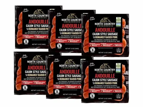 Our fastest-selling sausage is also our spiciest: andouille. A Louisiana hot-link sausage spiced with black, white, and red pepper and smoked for hours. A good andouille like ours is the backbone of lively gumbos and jambalayas. The lean pork we use makes these lower fat than other brands, so you don’t have to be shy with the roux.