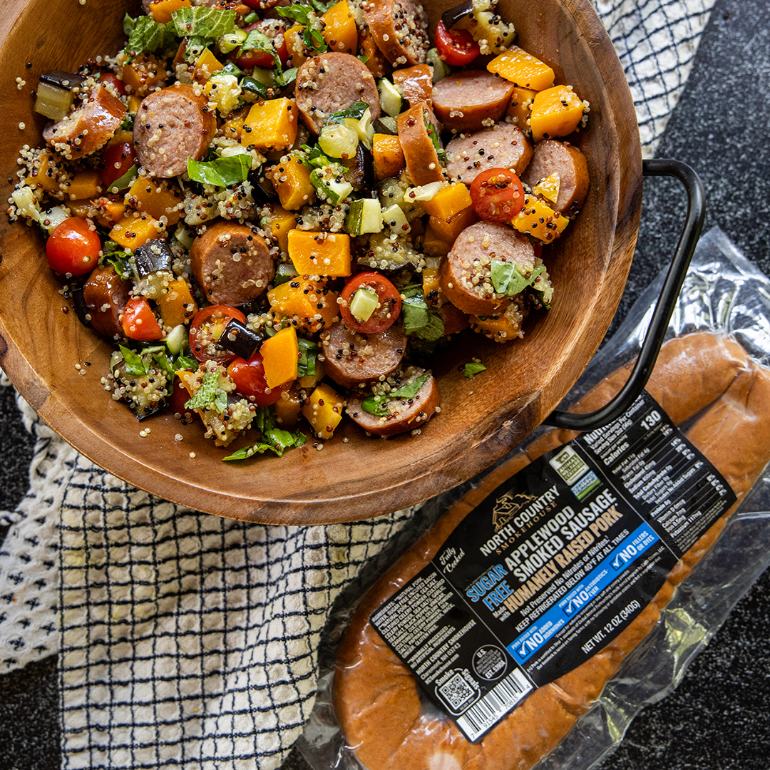 - 12oz North Country Smokehouse Sugar Free Applewood Smoked Sausage, sliced 1/4"