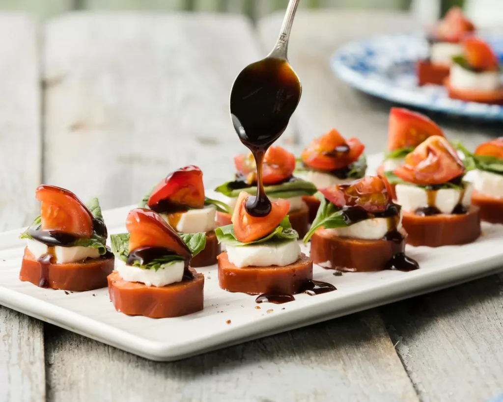 You know how at fancy parties, they serve things skewered on toothpicks? One of our favorite ways to make snack dinner even more fun is to skewer a couple tasty morsels on a toothpick to grab and munch (no black tie required). A classic combination (inspired by summer) is a slice of our double-smoked pepperoni, a ball of fresh mozzarella, and a cherry tomato on top. The smoky pepperoni lends a spicy punch to the mild cheese, punctuated by the bright burst of sweet tomato. It’s the perfect, balanced bite. But use your imagination and create your own stacks: Swap a bit of ham or smoked chicken for the pepperoni, or an olive for the tomato. Better yet, make a few of each so everyone can pick what they like.